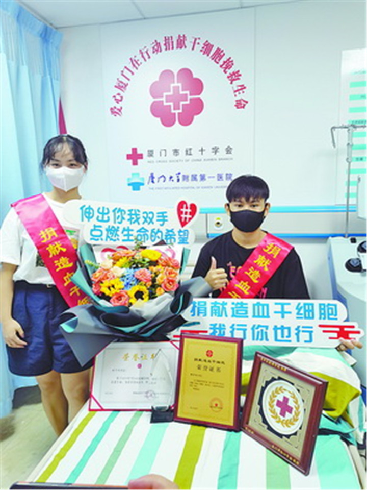 厦门网讯(厦门日报记者 何无痕)近日,我市第105例及106例造血干细胞捐献者先后在第一医院内科大楼完成造血干细胞捐献采集,分别捐献了342毫升和216毫升的造血干细胞悬浮液,为他人送去生的希望。