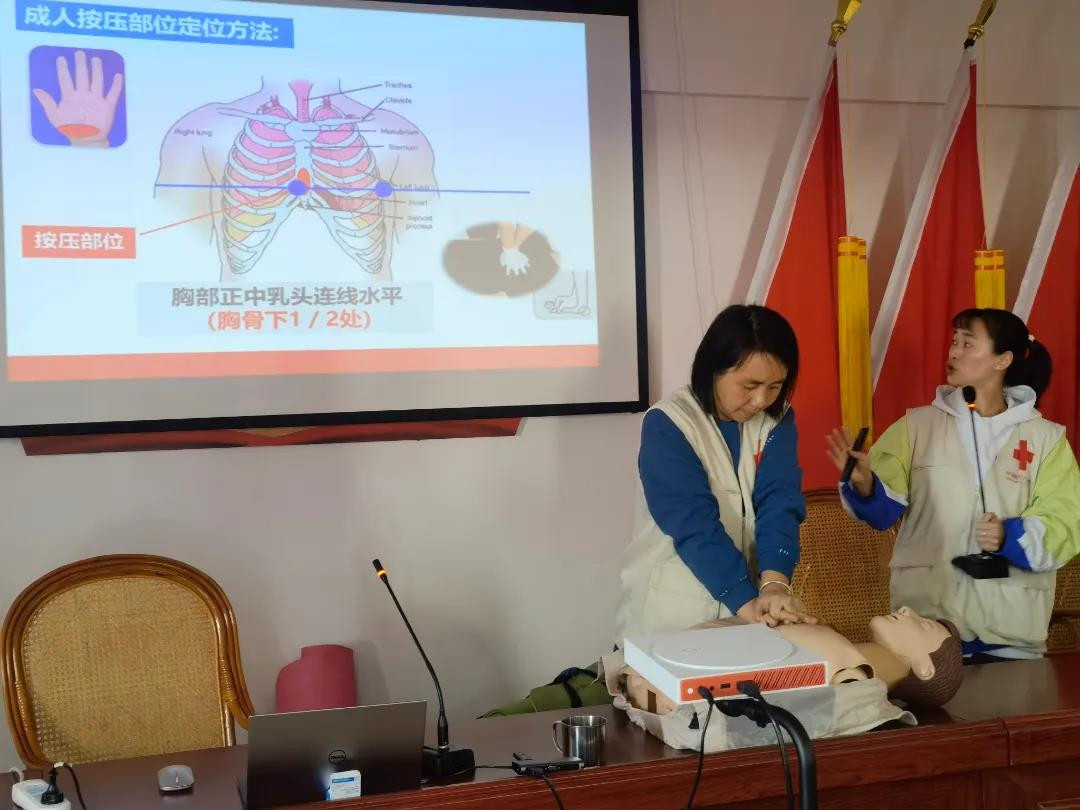 她通过大量生动的案例讲授了基础心肺复苏术、气道异物梗阻现场救护等相关知识,现场演示了心肺复苏术的基本操作和技术要领。本次培训提高了党员应急急救技能,确保党员能抢先走在施救前列。
