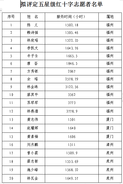 根据《中国红十字志愿服务管理办法》,我会组织开展了全省五星级红十字志愿者评选推荐工作。经全省各地推荐,综合审核各志愿者服务内容、时长和质量,报省红十字会党组会议研究审议通过,拟将陈义等46名全省红十字系统志愿者评定为五星级红十字志愿者,现予以公示,公示时间为2026年3月24日起五个工作日。