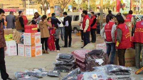 1月18日上午,泉州市泉港区红十字会与泉港家园义工协会联合举办的2014年新春送温暖、义工在行动暨红十字博爱送万家大型公益活动在泉港电信局二楼会议室正式启动。区文明办、区民政局、团区委、区计生协会、区慈善总会、民盟泉港总支、农工党泉港总支等多家单位、党派团体及众多爱心企业、商家、爱心人士参与活动。活动共募集到食品、衣物、日用品等爱心物资价值近5万元,征集到社会爱心车辆50多部,有100多名义工、志愿者参与现场活动。在简短的启动仪式后,红十字志愿者们分成15组奔赴慰问各镇的孤寡贫困老人、寺庙庵堂收养的孤儿、失独家庭等困难群体,总计送出200余份慰问物资。春节前,区红十字会还调集发放由省红十字会配发的博爱救助箱、年货大礼包、干货、米面、棉被等人道物资,慰问辖区内的困难群众以及部分罹患恶性肿瘤、先天性心脏病、急性白血病的青少年患者。 (泉州市泉港区红十字会)