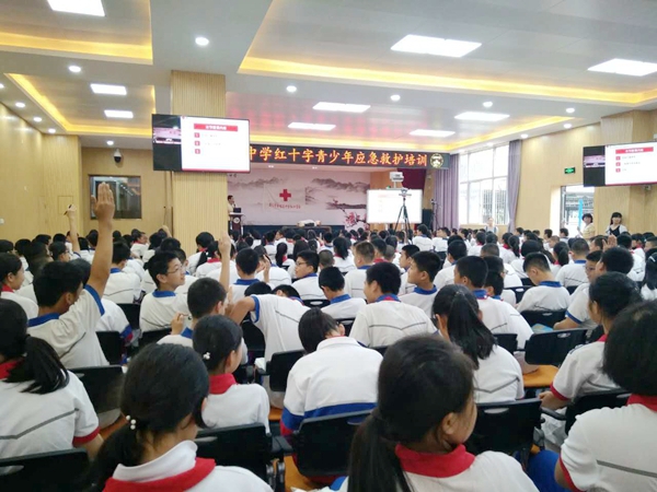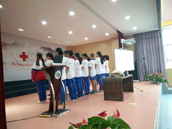 社区邀请了莲前卫生服务中心暨思明区红十字应急救护培训讲师叶良灶医生为金鸡亭中学初一年级500多个学生讲课。活动开始先举办了入会仪式,紧接着叶医生为孩子们培训了心肺复苏等应急救护知识,叶医生用生动的事例及互动游戏,让孩子们在轻松的氛围中即学到了知识,有感受到生命的可贵。活动在孩子们的掌声中圆满完成。