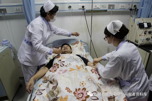 2017年12月14日下午,来自龙岩武平县的钟葛锋在福建省协和医院进行造血干细胞采集,所采集的造血干细胞将用来挽救北京的一名血液病患者。