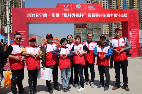 3月11日上午, 1500多名跑友相聚东侨,共赴2018年创文明城、迎省运会、醉美东侨迎新春环东湖半程马拉松赛。宁德市红十字会组织近百名志愿者参加了此次护航。