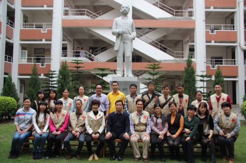4月4日,漳州市红十字会组织20余名市直红十字志愿者前往漳州卫生职业学院福建省红十字人道与生命教育基地参观,瞻仰遗体捐献者的爱心善举,感受他们的无私奉献精神,并与国际红十字会创始人亨利·杜南塑像合影。(漳州市红十字会)