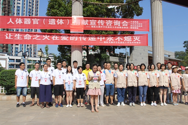 7月14日,宁化县红十字会携手福建医科大学医启·遇见宁化实践队在翠园广场开展让生命之火在爱的传递中永不熄灭人体器官(遗体)捐献宣传咨询会,活动共有21名红十字志愿者和11名福医大学生参加,400余名市民参与,2名志愿者现场填写遗体器官捐献登记表,共发放宣传资料1000余份。