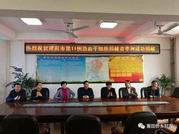 出生于1982年的李洲,现任职于荔城区镇海街道网格化信息服务中心,在日常工作和生活中,李洲也是个热心肠的人,经常参加公益事业,自2013年起,其每年都积极参加无偿献血,截止目前已无偿献血3600毫升,在一次献血中,李洲得知捐献造血干细胞可以为患有血液病患者获得重生,于是当即加入中华骨髓库,成为一名中华骨髓库的志愿者,2017年12月份,李洲接到市红十字会工作人员通知,其与上海一名血液病患者骨髓配型成功,希望其捐献造血干细胞,挽救该患者的生命。 接到通知后,李洲积极配合,通过前期的高分辨、体检等工作后,1月16日上午,李洲在省肿瘤医院的采集室成功进行造血干细胞采集,采集后的造血干细胞也在第一时间被送往上海。接到通知的那一刻,我感到特别的惊喜和开心,虽然我与那名患者互不认识,但能够成功配型,这也是一种缘分,作为一位公民,我所做的这些都是应该的,也是一份责任,希望那名患者能够早日康复,今后回报社会。李洲说,自己做的这些都是小事,其实要感谢单位的领导和同事及家人的理解与支持,特别是得到家人的支持,这才让他没有后顾之忧,积极配合采集前期的一系列准备工作,并顺利进行造血干细胞采集。